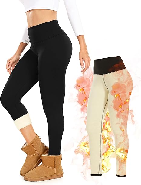 Thick Fleece Lined Leggings for Women - High Waisted Winter Warm Yoga Pants Tummy Control Thermal Workout Leggings