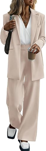 Women's 2024 Fall Two Piece Outfits Blazer Jacket and Wide Leg Pants Pockets Business Casual Suit Sets